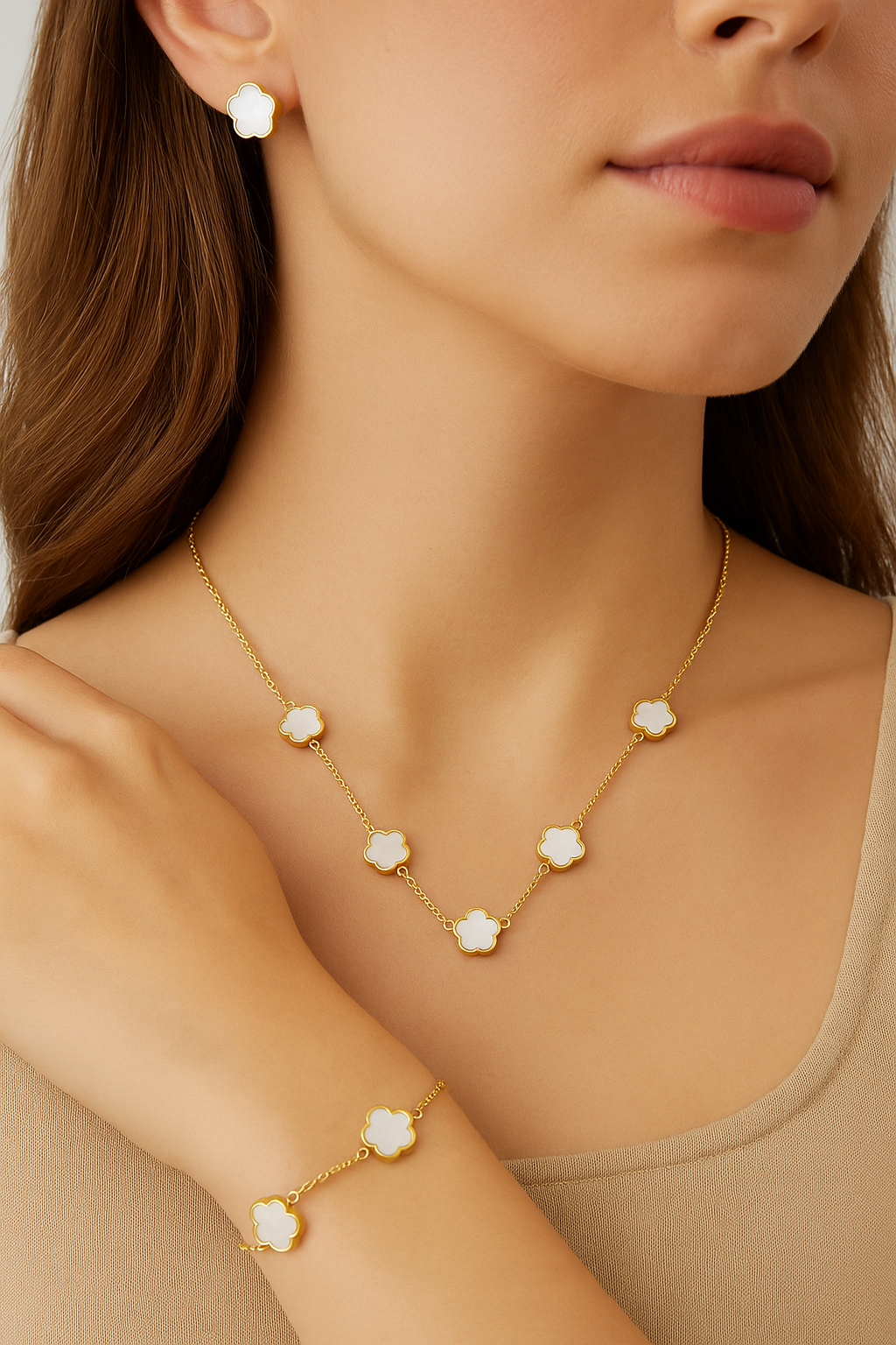 Kit Quadrifoglio Dorato – Eleganza in Madreperla